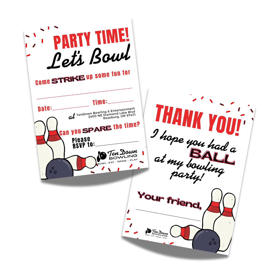 The FUN, bowling, and food will be at the lanes, where all the excitement is! We are happy to provide an extra table for gifts and cake (store-bought only, please) if needed, just let us know!
